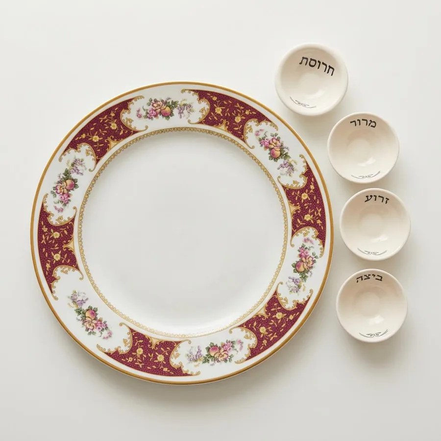 צלחת וינטג וקעריות קרמיקה עבודת יד = צלחת פסח