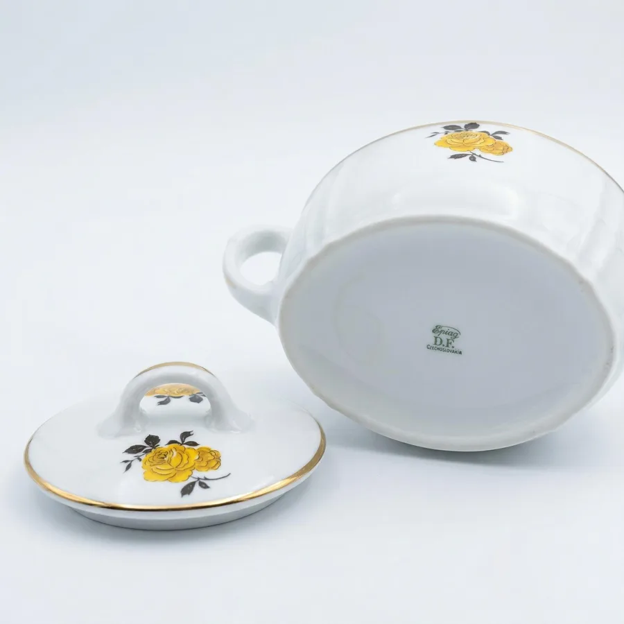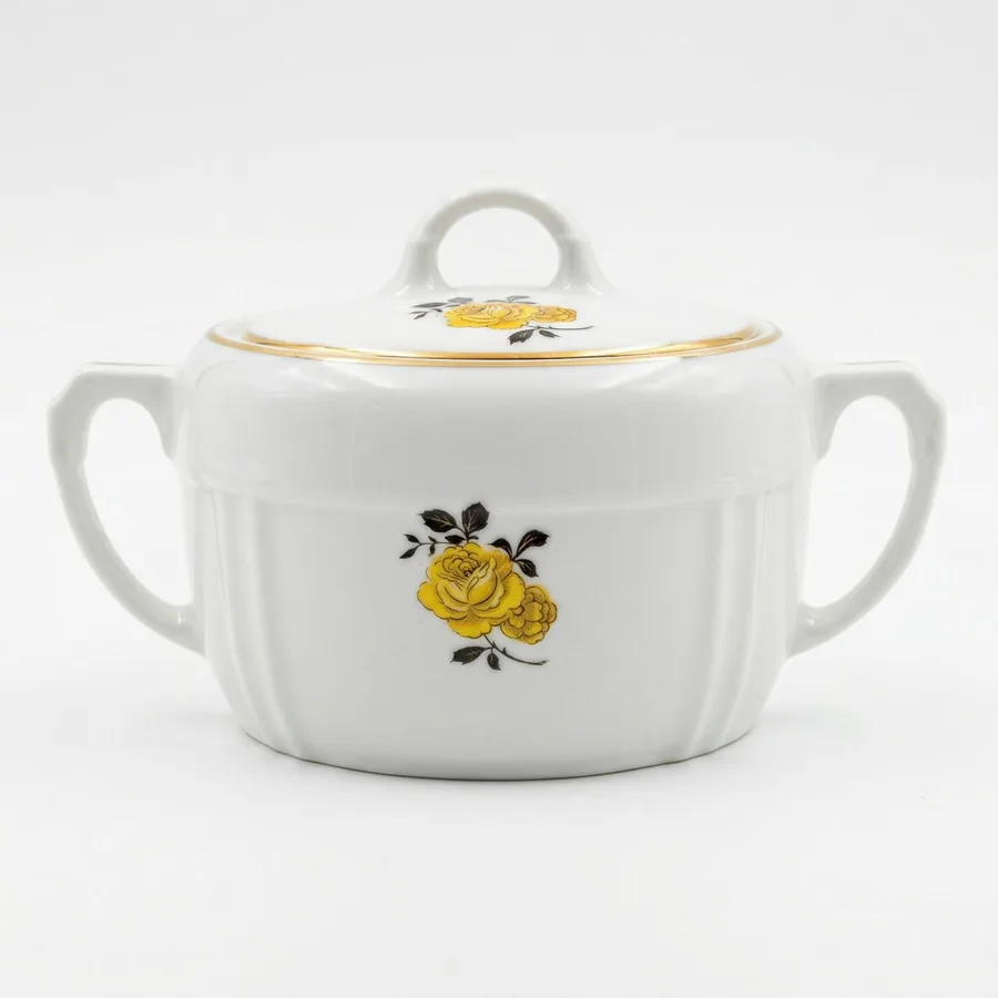 כלי סוכר מפורצלן חלק מסרוויס שושנה צהובה