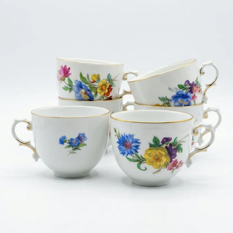 מאויר בזר פרחים כולל פס בצבע זהב בדופן הכלי