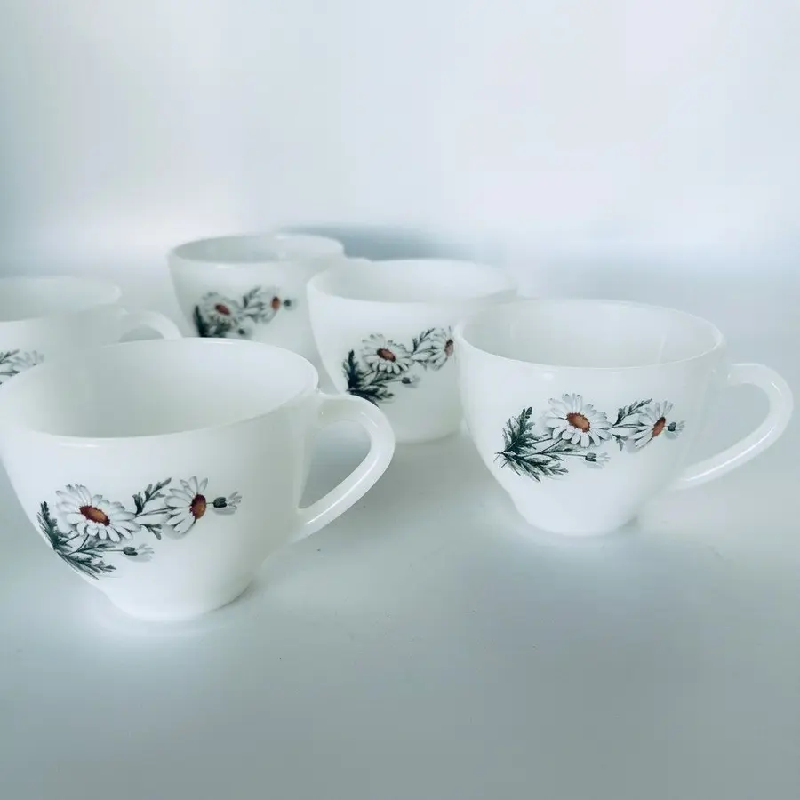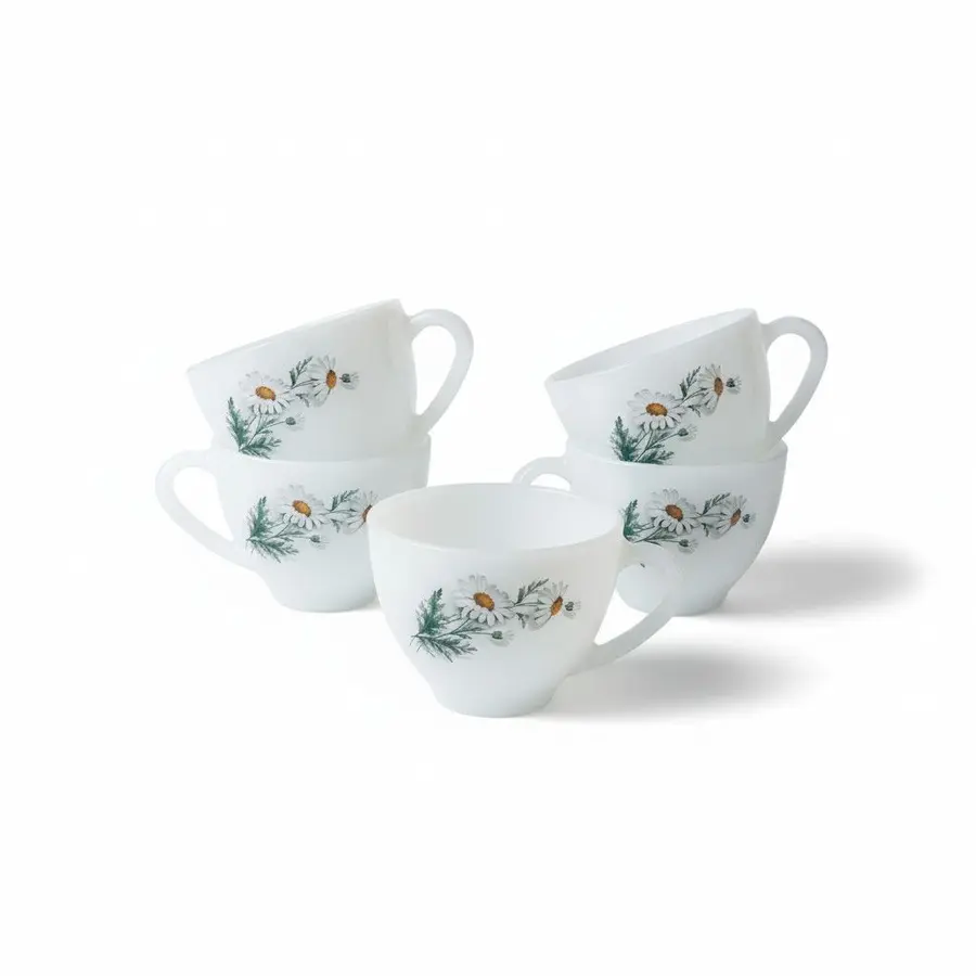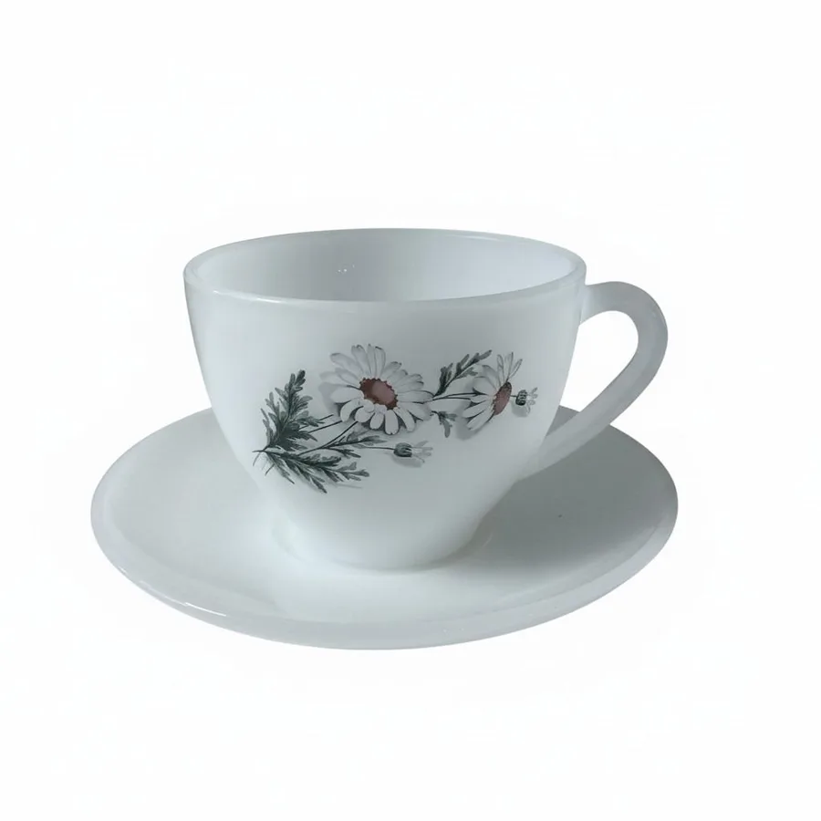ספל ציור פרח המרגנית וצלחת ללא ציור , מזכוכית "ארקופל "