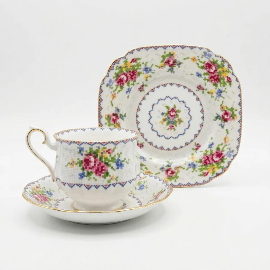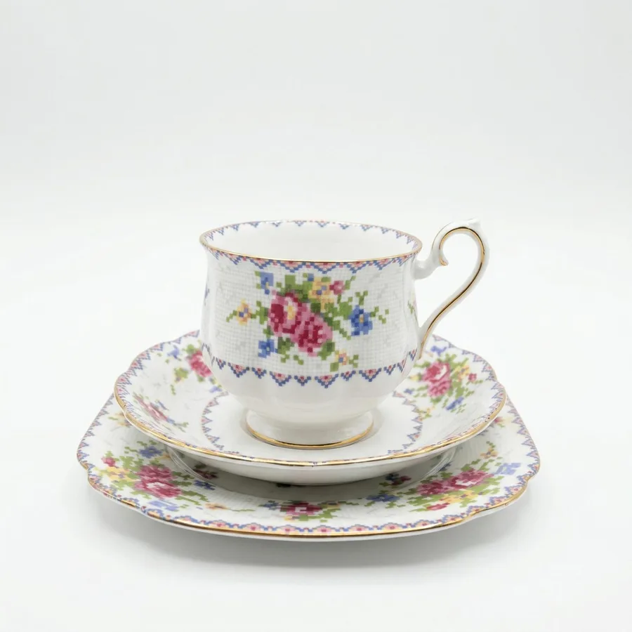 סט בודד טריו מפורצלן ROYAL ALBERT דגם פטי פוינט