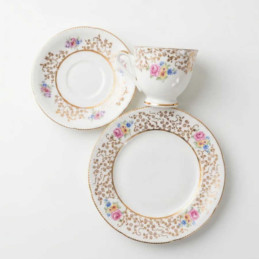ספל אספרסו ,צלחת תחתית וצלחת עוגה מפורצלן