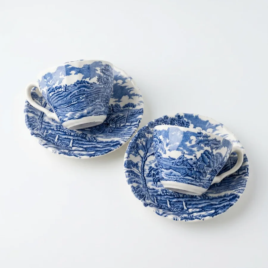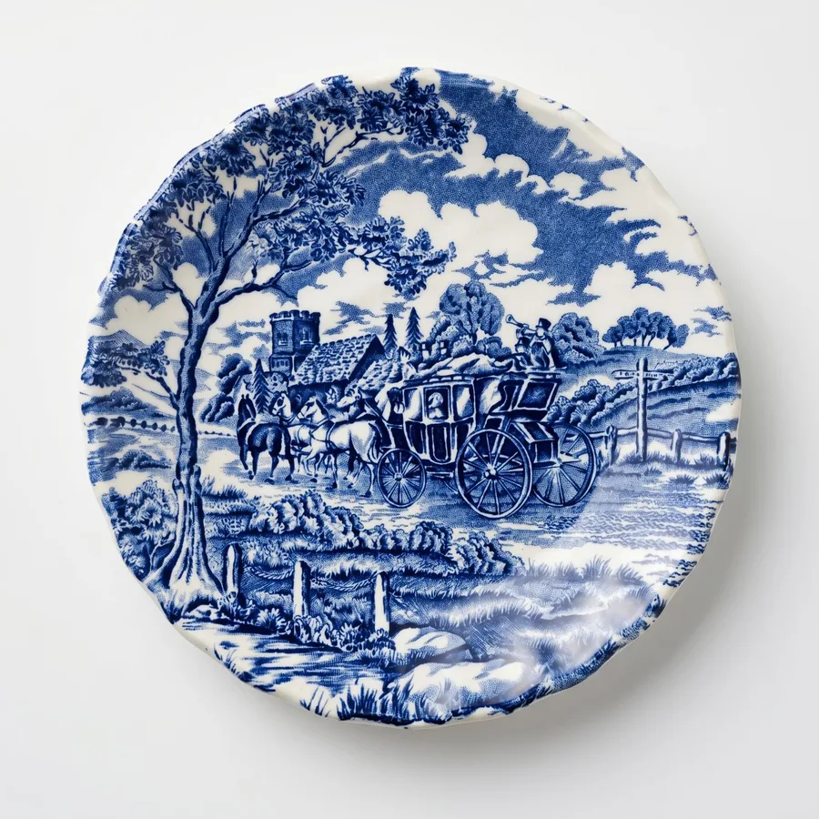 ספל וצלחת מחרס אנגלי חלק מסרוויס כרכרה וסוסים